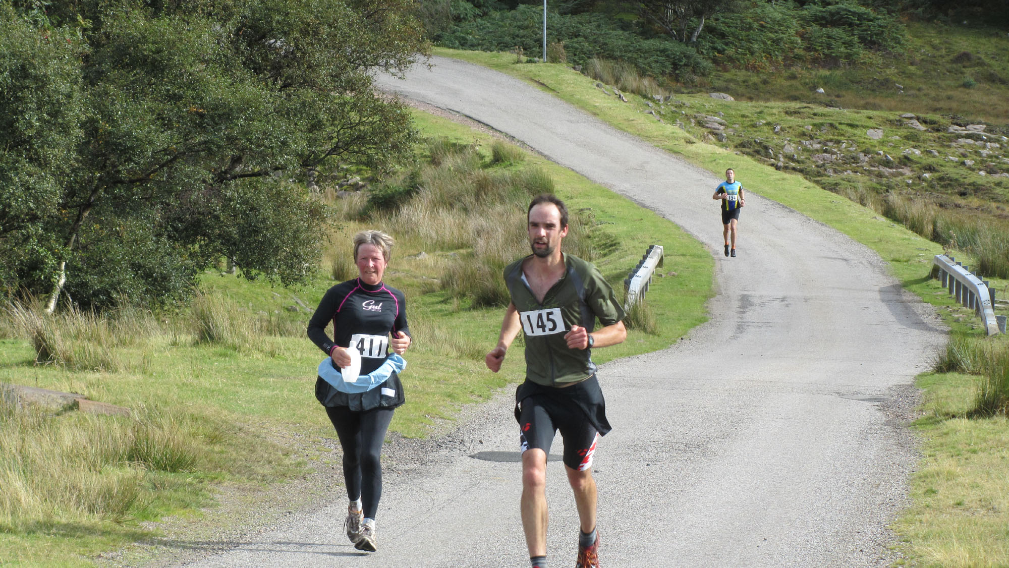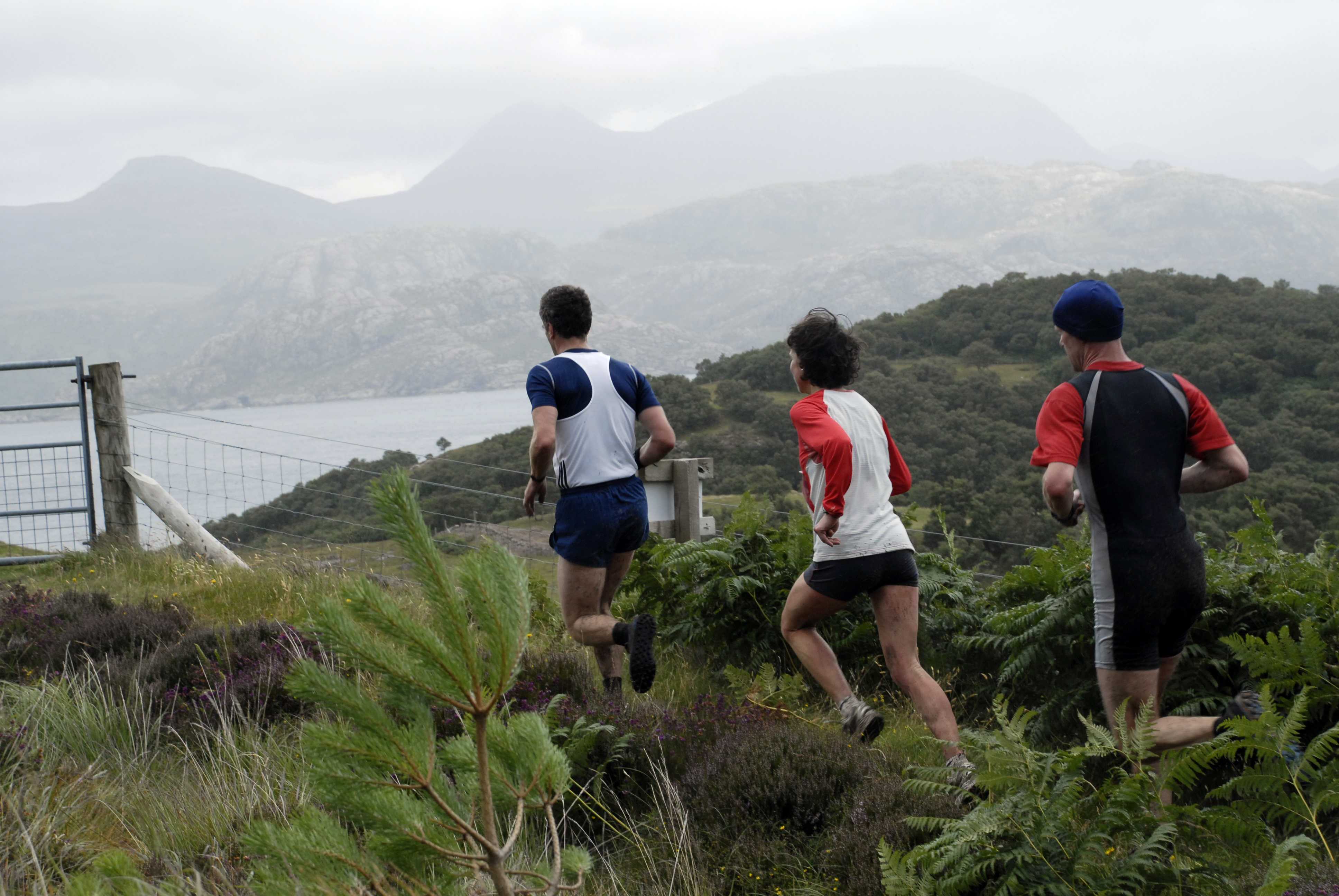 Andy Leigh-Brown, who for years has been our main Marshal on the run, managed to take over 60 photos the Race above Loch Gaineamhach, the ‘Sandy Loch’. He would have had more but for a rain shower blurring his lens.